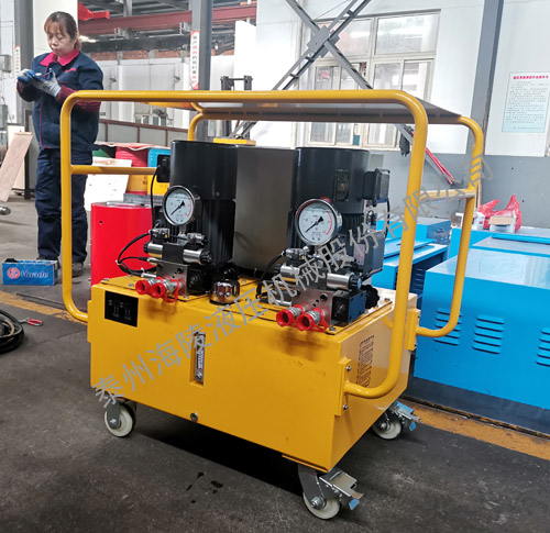 我公司生產(chǎn)的超高壓泵站采用符合液壓系統(tǒng)要求的液壓油作媒介,由電機經(jīng)泵柱塞泵送出符合要求流量與壓力,供液壓系統(tǒng)使用。